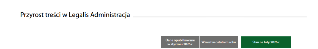 System Informacji Prawnej Legalis Administracja w lutym 2026 r. uzupełniony został w stosunku do poprzedniego miesiąca aż o 513 aktów prawnych oraz 715 aktów UE, a także o 22 194 orzeczeń (w tym 18 948 orzeczeń sądów).